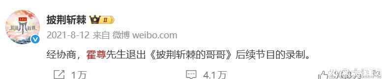2021年,霍尊前女友陈露发布长文揭露与霍尊9年恋情指控其出轨。后续霍尊也发布长文,回应称以目前“仅剩的健康起誓”,“在2020年与(陈)露露分开之前”,没有对其不忠。2021年,霍尊宣布退圈,并对粉丝说:“虽然霍尊塌了,但这个世上一定还有别的人值得你们爱和期待。”据消息,霍尊解释了发布这条长文的原因,表示风波波及太广,网络上的一些言论已经深深伤害了许多无辜的朋友,“有朋友已经崩溃,有朋友丢失工作,有朋友的孩子在幼儿园遭到恶意辱骂,甚至有个朋友自己也有了轻生的念头……他们都是因为我卷入这场风波的,也希望所有的责骂、不满、攻击都发泄在我身上,我愿意扛下这一切。”2021年8月12日,《披荆斩棘的哥哥》宣布霍尊退出节目后续录制。